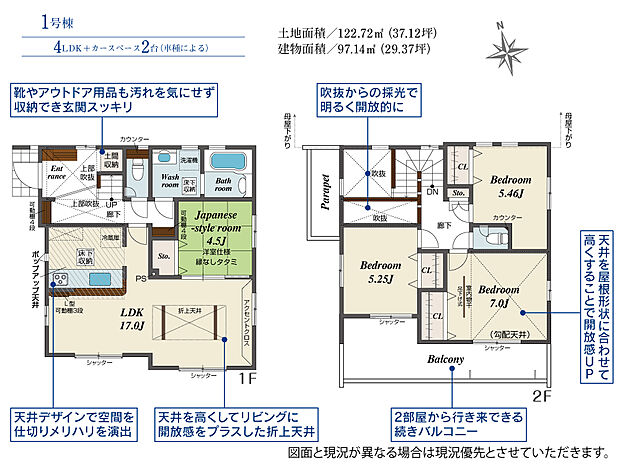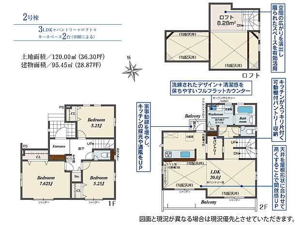 95.45m2(約28.87坪)~97.14m2(約29.38坪) |
