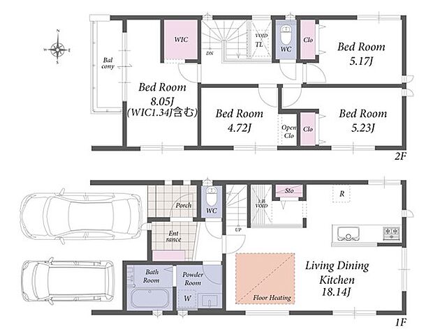 広々18畳超の1階LDKを採用。お車2台並列駐車可能な新築分譲住宅です。