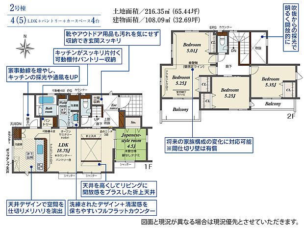 | 土地面積 | 215.10m2(約65.06坪)~216.35m2(約65.44坪) | ||