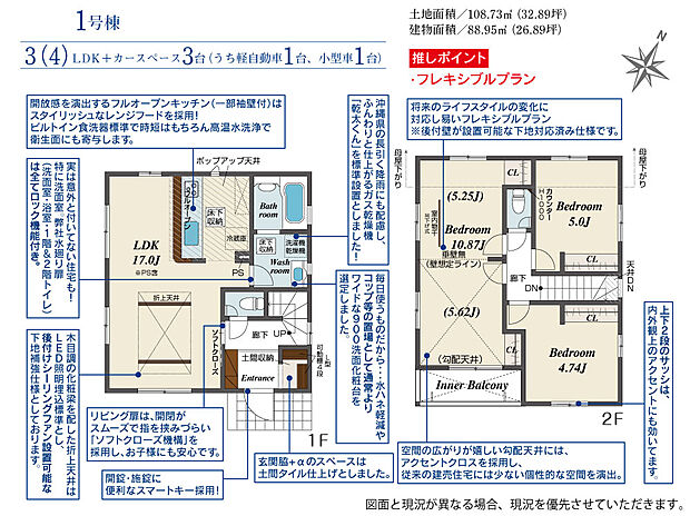- 「建築条件付き土地」の「建物プラン例」は、土地購入者の設計プランの一例であり、プランの採用可否は任意です。