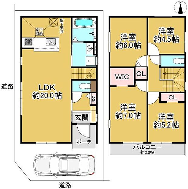 • 「建築条件付き土地」の「建物プラン例」は、土地購入者の設計プランの一例であり、プランの採用可否は任意です。