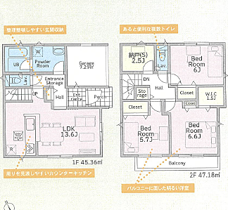 | 間取り | 3SLDK 間取り内訳:リビングダイニングキッチン 13.6帖・洋室 6.6帖・洋室 6帖・洋室 5.7帖・収納 2.5帖 |