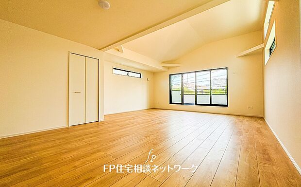 対面式のカウンターキッチンですので、出来上がったお料理をカウンターに並べてお子様が運ぶなど、お手伝いの時間も増えそうですね!ご家族と会話をしながらお料理を楽しめ一体感を感じられるキッチン仕様です。 19.7帖の広々LDK(1号棟)。導線もしっかりと取れているので、ダイニングテーブルやソファー、ローテーブルなどの家具もしっかりと配置できます。ゆったりとした広さの空間でご家族だんらんの時間をお過ごし 勾配天井でオープンでのびやかな空間を生み出す、こだわりの広がりとゆとり。部屋の隅々まで明るく、光と爽やかな風をたっぷりと取り込めます。気持ちの良い朝が迎えられそうですね。