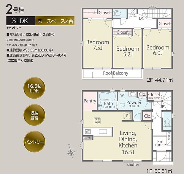 間取り内訳:リビングダイニングキッチン 16.5帖・洋室 7.5帖・洋室 6帖・洋室 5.2帖