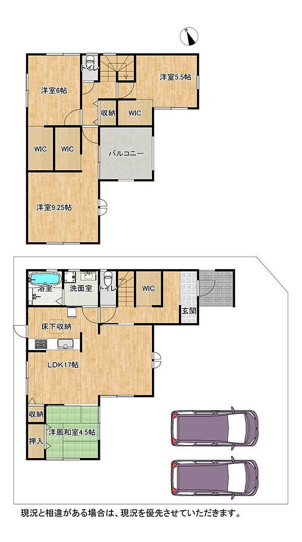 | 間取り | 4LDK 間取り内訳:リビングダイニングキッチン 17帖(1階)・和室 4.5畳(1階)・洋室 9.2帖(2階)・洋室 6帖(2階)・洋室 5.5帖(2階) |