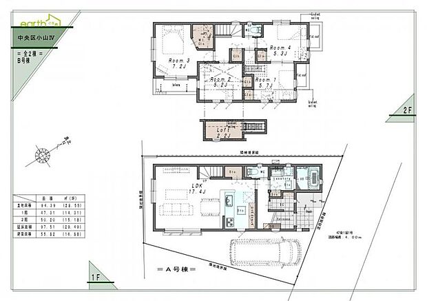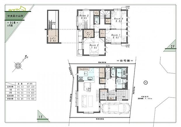 | 間取り | 4LDK 間取り内訳:リビングダイニングキッチン 17帖(1階)・洋室 7帖(2階)・洋室 5.2帖(2階)x2・洋室 5帖(2階) |