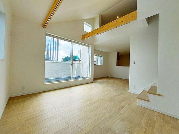 【香川駅まで徒歩5分!全10棟の開発分譲地!自然豊かな住環境】広いLDKは解放感たっぷり光溢れる勾配天井!2階リビングで周囲を気にせずリラックス