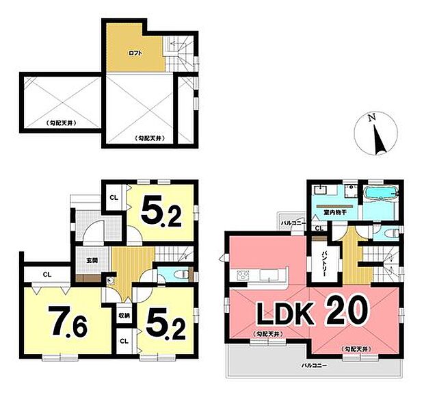 ■カースペース2台分駐車可能(車種による)■小学校、中学校共に徒歩10分圏内■約8.2帖のロフトスペース付■約20帖のLDKは勾配天井・アクセントクロス採用