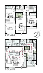| 間取り | 3LDK 間取り内訳:リビングダイニングキッチン 17.2帖(1階)・洋室 7.5帖(2階)・洋室 6.7帖(2階)・洋室 5.2帖(2階) |