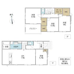 | 間取り | 4LDK 間取り内訳:リビングダイニングキッチン 15.6帖(1階)・和室 6畳(1階)・洋室 8帖(2階)・洋室 6帖(2階)x2 |