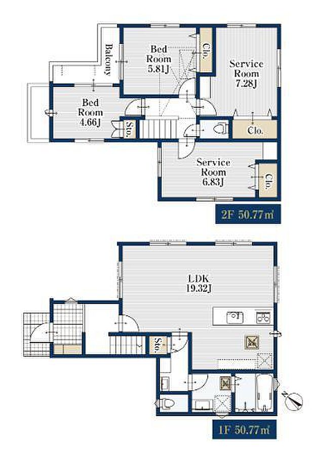 間取り 2LDK+2S 建物階 木造、地上2階建て