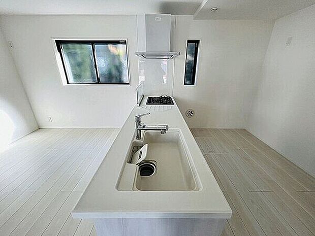 • 【シンク】浄水器一体型水栓付のシステムキッチン。シンクは溝の無い一体形状のため、お手入れカンタンでいつもキレイな状態を保てます。