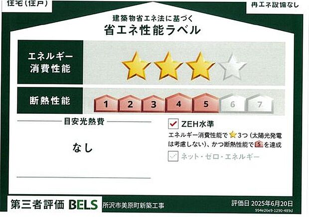 - 星マークの数が多いほどエネルギー消費性能が高いことを示しています。再エネ設備のない住宅は★0~★4の5段階評価、再エネ設備がある住宅は★0~★6の7段階評価となります。
