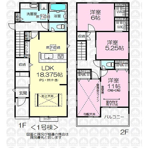 カースペース並列2台可(車種による)/ウォークインクローゼット/折上天井/各居室収納あり