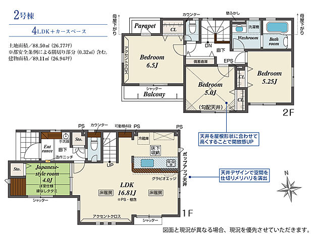 | 土地面積 | 88.50m2(約26.77坪)~89.11m2(約26.95坪) | ||