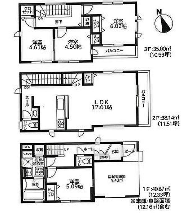| 建物面積 | 114.01m2(34.41坪)車庫・車路面積12.16m2(3.67坪)含む | ||