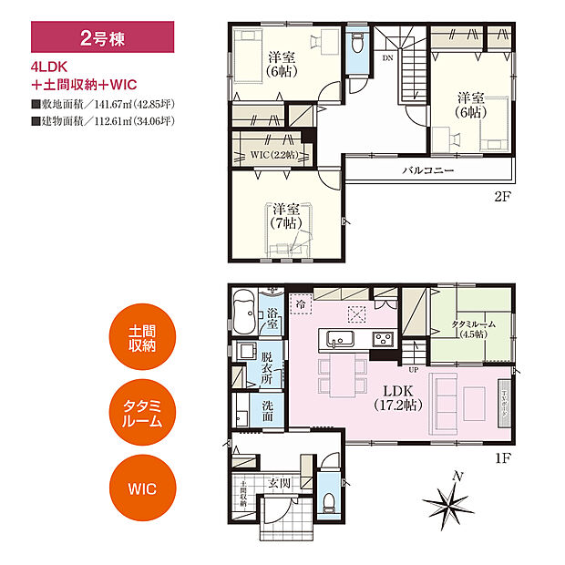 | 建物面積 | 106.82m2(1号棟)~112.61m2(2号棟) | ||