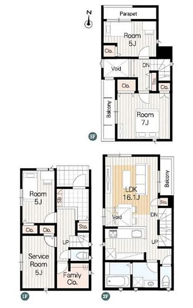 間取り 3LDK+S 建物階 木造、地上3階建て