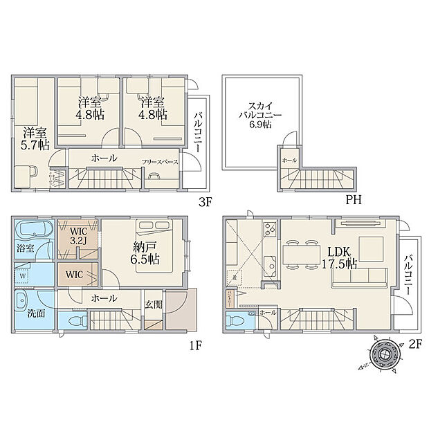 駅徒歩6分!周辺商業施設充実!住環境良好エリアに天空の家登場!WIC2カ所等収納充実!ご家族分のお荷物がすっきり片付きます! お料理中もご家族との会話を楽しめる人気の対面キッチンを採用!パントリーは食品や日用品のストック、防災グッズの収納にも便利! 暮らしにゆとりをもたらす嬉しい駅徒歩6分!徒歩圏内に大型商業施設があり日々のお買い物に便利!ご家族での休日のおでかけも楽しめますね!嬉しいスカイバルコニーはプライベート空間でご家族だけの贅沢な時間!