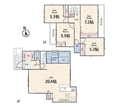 | 間取り | 4LDK 間取り内訳:リビングダイニングキッチン 19帖(1階)・洋室 6.2帖(2階)・洋室 5.5帖(2階)・洋室 5.2帖(2階)・洋室 5帖(2階) |