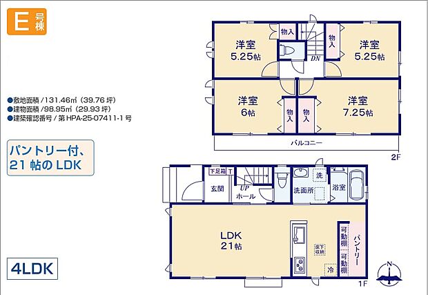 | 間取り | 4LDK 間取り内訳:洋室 5.2帖(2階)・洋室 5.2帖(2階)・洋室 6帖(2階)・洋室 7.2帖(2階) |