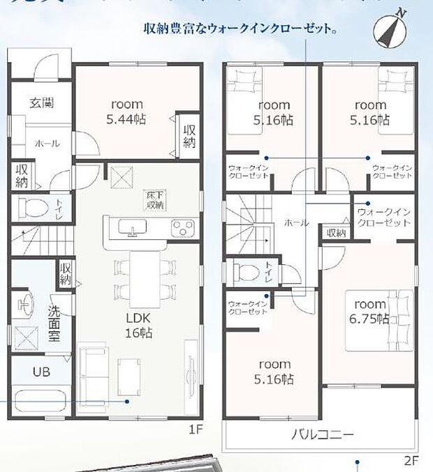 全室フローリングの5LDK、2階建て♪収納豊富なウォークインクローゼットは4部屋に設置!