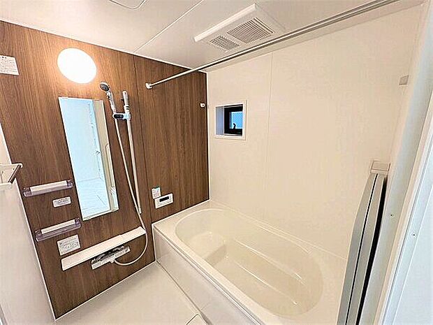 バスルームには浴室乾燥機付き。対面式キッチンを採用した新築分譲住宅です。