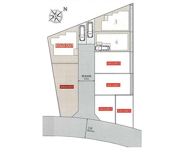 | 土地面積 | 86.23m2~113.63m2<私道負担面積136.35m2 私道負担割合1/9> | ||