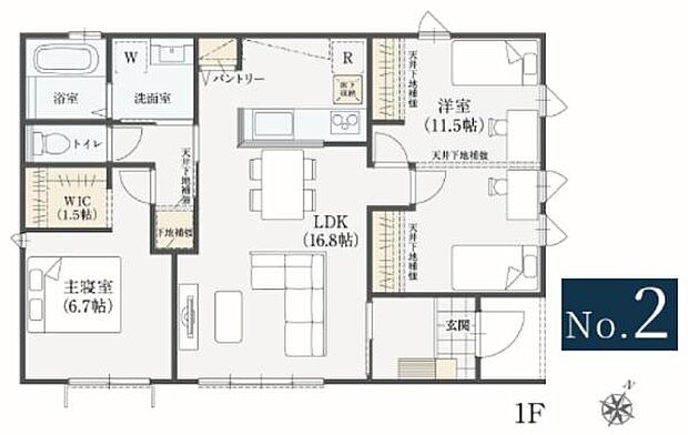 | 間取り | 2LDK 間取り内訳:リビングダイニングキッチン 16.8帖(1階)・洋室 6.7帖(1階)・洋室 11.5帖(1階) |