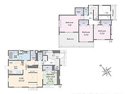 - 「建築条件付き土地」の「建物プラン例」は、土地購入者の設計プランの一例であり、プランの採用可否は任意です。