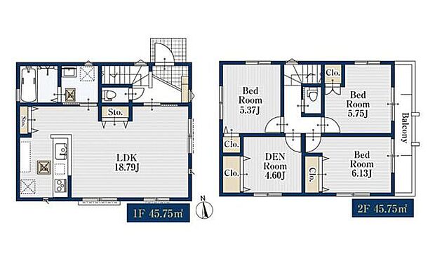 LDKは対面式キッチンを採用。全居室収納付でお部屋すっきりの新邸です。