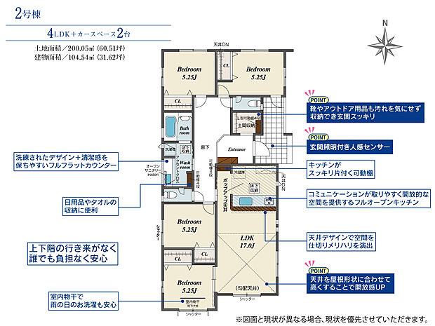 • 「建築条件付き土地」の「建物プラン例」は、土地購入者の設計プランの一例であり、プランの採用可否は任意です。