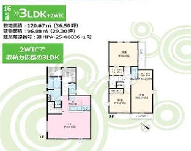 | 間取り | 3LDK 間取り内訳:リビングダイニングキッチン(1階)・洋室(2階)・洋室(2階)・洋室(2階) |