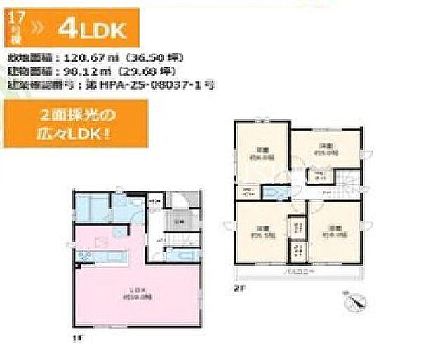 | 間取り | 4LDK 間取り内訳:リビングダイニングキッチン(1階)・洋室(2階)・洋室(2階)・洋室(2階)・洋室(2階) |