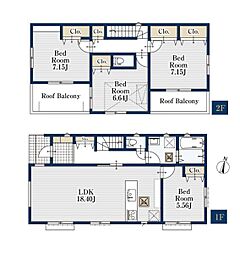 | 間取り | 4LDK 間取り内訳:リビングダイニングキッチン 20帖(1階)・洋室 5.2帖(2階)x2・洋室 6帖(2階)x2 |