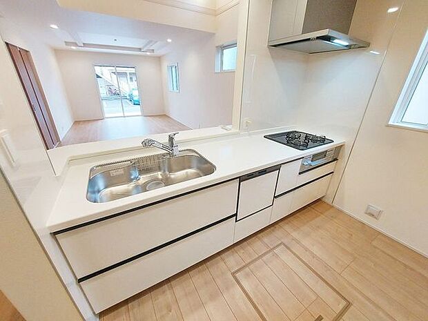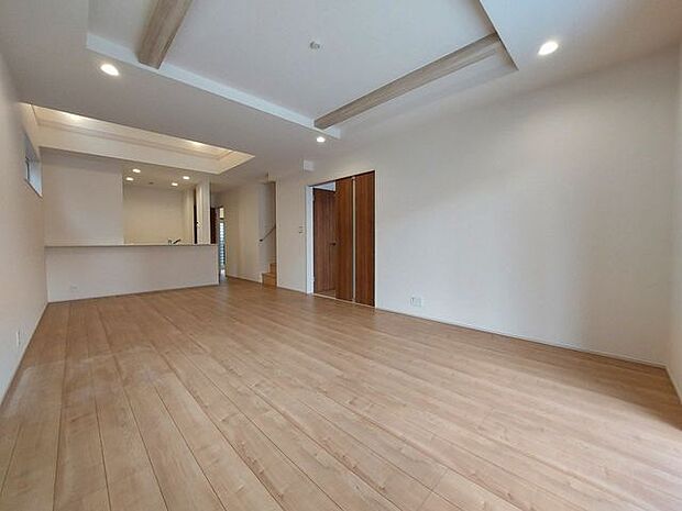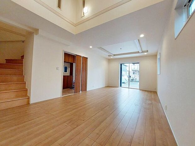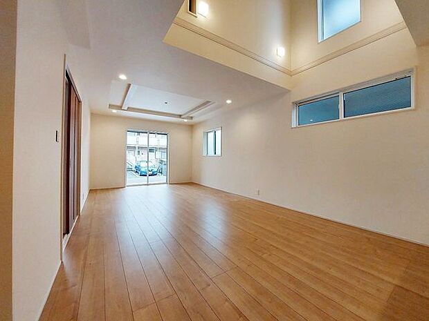 【吹抜けと折上天井が叶える開放的なLDK空間。日当たりの良い南西道路に面した、全2棟のこだわり新築戸建】地震に強い耐震構造。安心の住まい。性能評価書付き