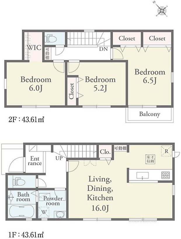 | 間取り | 3LDK 間取り内訳:洋室 6帖(2階)・洋室 5.2帖(2階)・洋室 6.5帖(2階) |