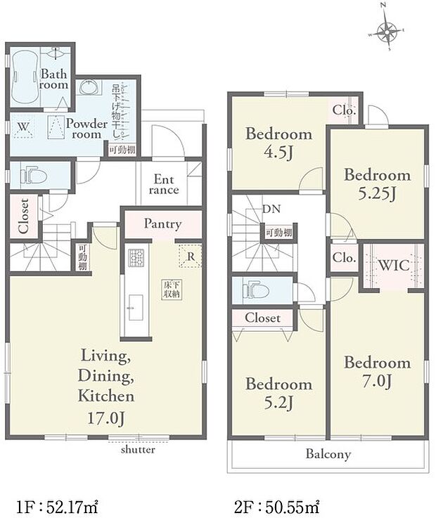 | 間取り | 4LDK 間取り内訳:洋室 7帖(2階)・洋室 5.2帖(2階)x2・洋室 4.5帖(2階) |