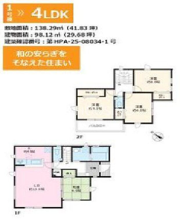 | 間取り | 4LDK 間取り内訳:リビングダイニングキッチン(1階)・和室(1階)・洋室(2階)・洋室(2階)・洋室(2階) |