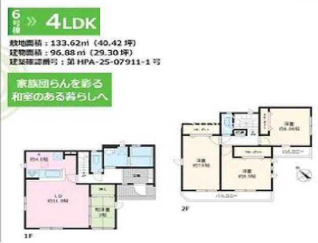 | 間取り | 4LDK 間取り内訳:洋室(2階)・洋室(2階)・リビングダイニングキッチン(1階)・和室(1階)・洋室(2階) |