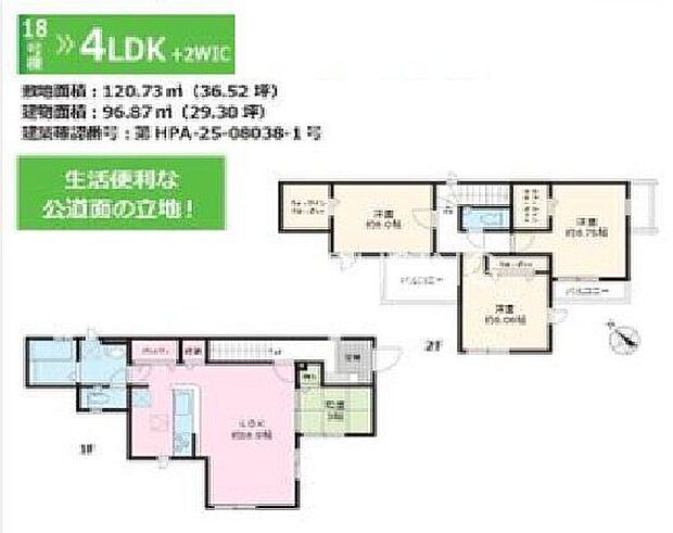 | 間取り | 4LDK 間取り内訳:リビングダイニングキッチン(1階)・和室(1階)・洋室(2階)・洋室(2階)・洋室(2階) |