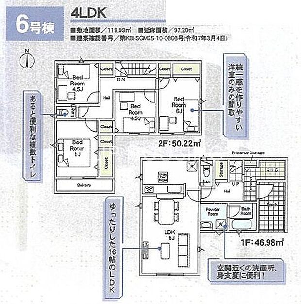 | 間取り | 4LDK 間取り内訳:リビングダイニングキッチン 16帖(1階)・洋室 4.5帖(2階)・洋室 4.5帖(2階)・洋室 6帖(2階)・洋室 6帖(2階) |