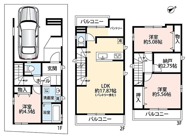 | 間取り | 3LDK+S | 建物階 | 木造3階建(軸組工法) |