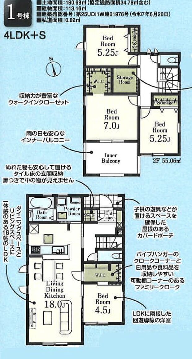• 備考欄:敷地:180.68? 建物:113.16? 納戸、整形地、緑豊かな住宅地、閑静な住宅地、浴室乾燥機、通風良好、陽当り良好、フラット35Sに対応、駐車2台可、2階建、小学校 徒歩10分以内、ウォークインクローゼット、床下収納、全居室収納、省エネラベル、フラット35・S適合証明書、LDK18畳以上、トイレ2ヶ所、温水洗浄便座、シャワー付洗面化粧台