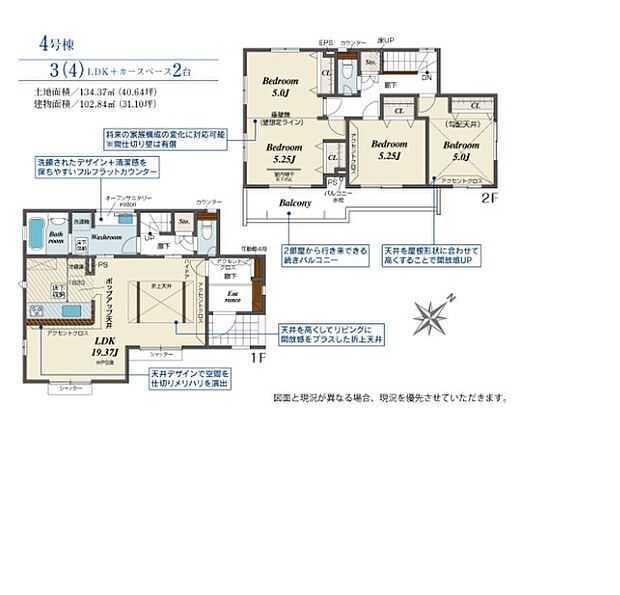 | 間取り | 4LDK 間取り内訳:リビングダイニングキッチン 19.3帖・洋室 5.2帖・洋室 5帖・洋室 5.2帖・洋室 5帖 |