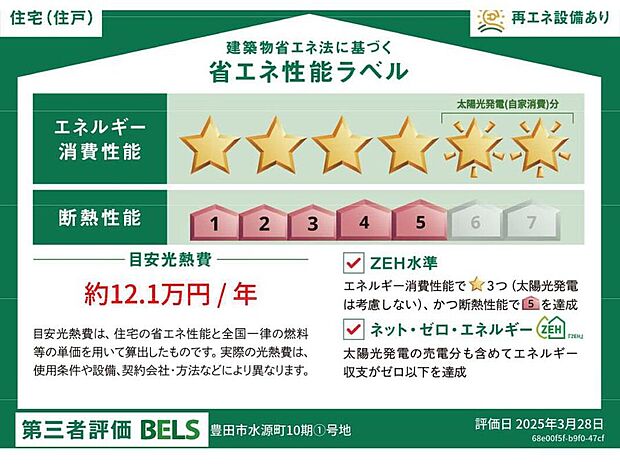 星マークの数が多いほどエネルギー消費性能が高いことを示しています。再エネ設備のない住宅は★0~★4の5段階評価、再エネ設備がある住宅は★0~★6の7段階評価となります。