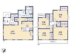 | 間取り | 3LDK 間取り内訳:リビングダイニングキッチン 16帖(1階)・洋室 6帖(2階)・洋室 7帖(2階)・洋室 6.7帖(2階) |