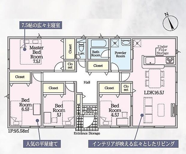 4LDK、平屋建て!全居室フローリング、LDKは16.5帖。