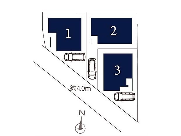 1号棟:南4m /3号棟:南4m /2号棟:南4m
