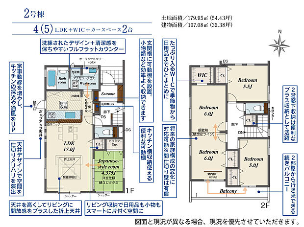 | 建物面積 | 107.08m2(約32.39坪)~108.94m2(約32.95坪) | ||